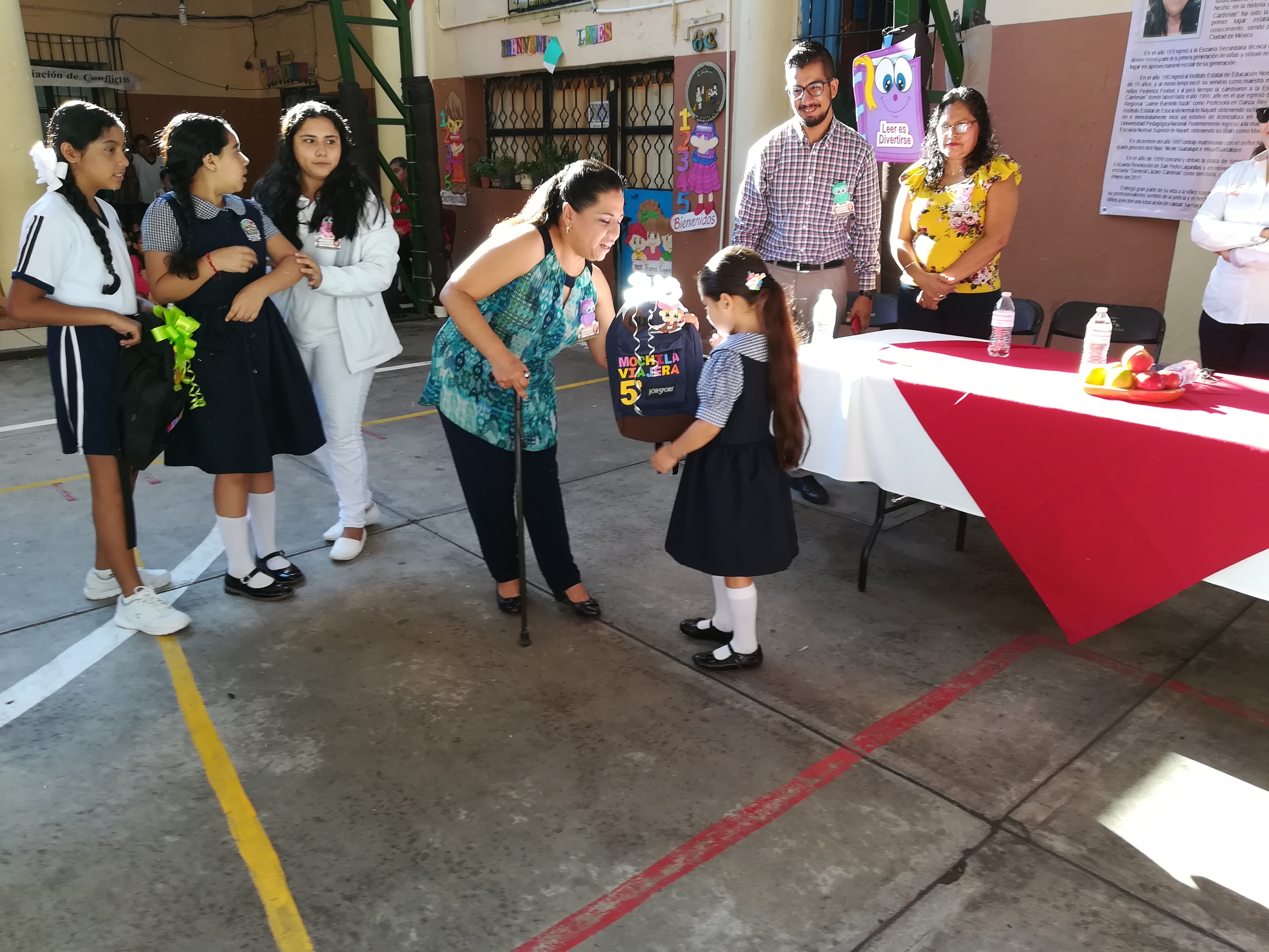 Al tomar el micrófono la maestra homenajeada dijo sentirse profundamente agradecida con la comunidad educativa por el acto y dio inicio al llamado Kilómetro del libro para fomentar la donación de materiales para la biblioteca por parte de invitados de honor, docentes y alumnos del plantel. Asimismo la maestra Lupita, como cariñosamente se le conoce, obsequió algunas mochilas viajeras con la intención de impulsar el préstamo de libros a domicilio.
