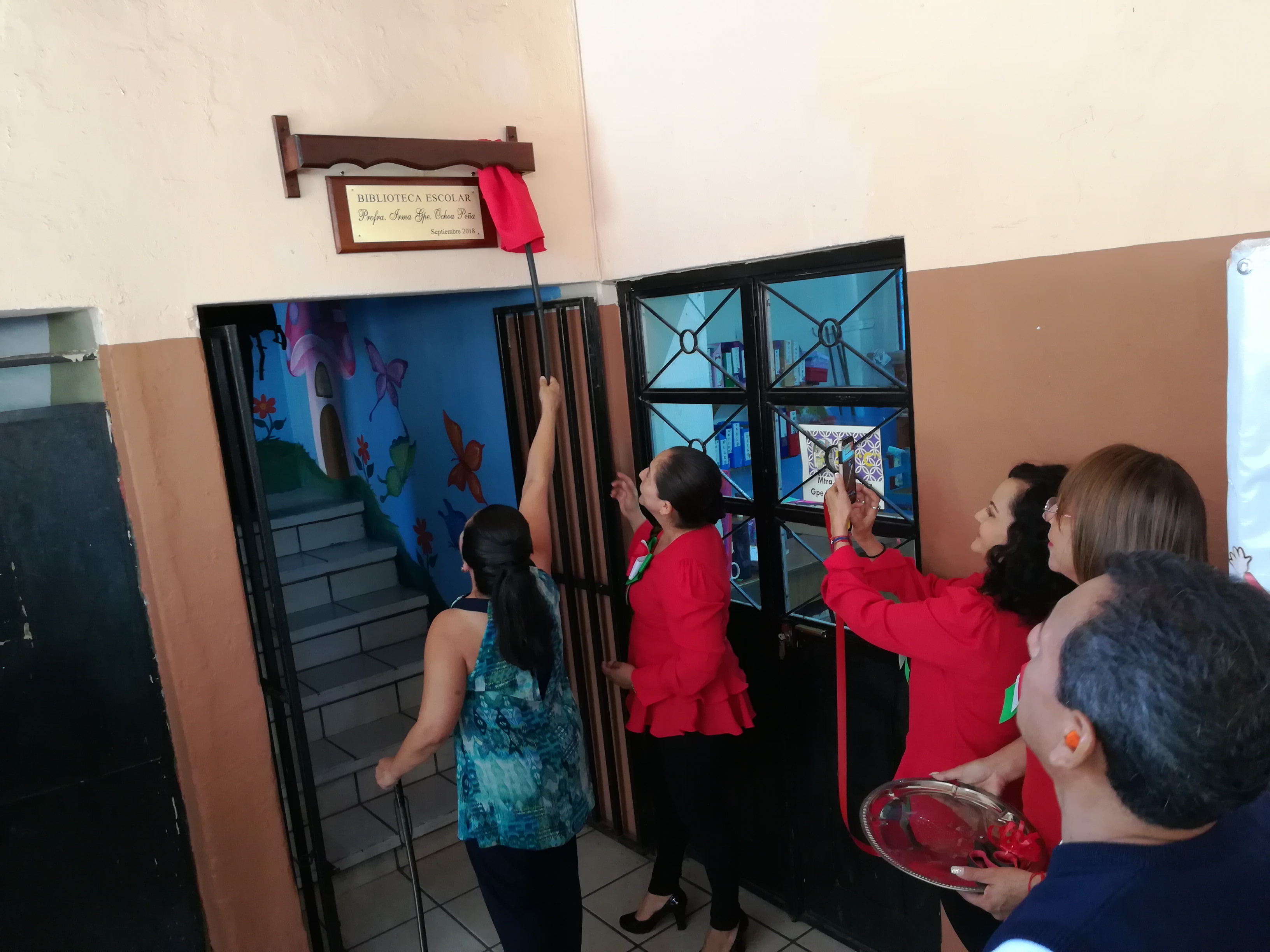 Enseguida se procedió al tradicional corte de listón y develación de la placa que nombra a la biblioteca “Mtra. Irma Guadalupe Ochoa Peña”, El evento culminó con un paseo por la biblioteca esperando que ésta sea un espacio efectivo para la promoción de la lectura entre la comunidad escolar.